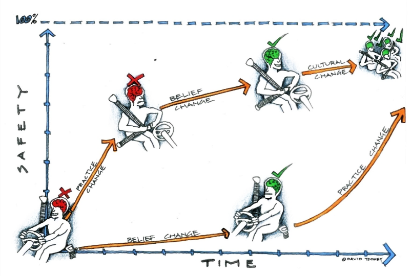 By evaluating safety participation among staff, changes and safety devices can be implemented more accurately. The infographic below uses seatbelts as an example to illustrate how evaluating change participation can optimise the implementation process to create a safer environment.