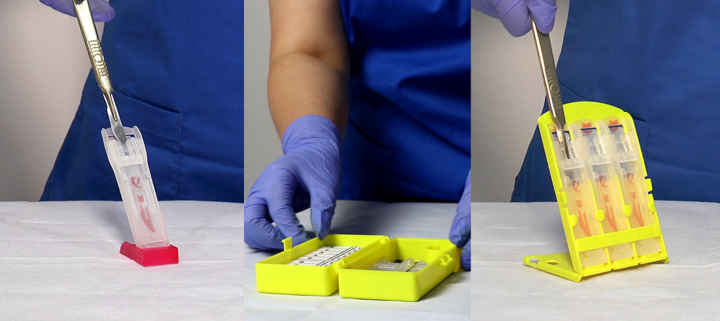 Sterile scalpel blade removers like the Qlicksmart’s Blade Removers are EORNA compliant with sharps safety guidelines. These safety-engineered devices are optimised for the healthcare industry. They enable healthcare professionals to quickly and safely remove up to 100 scalpel blades.