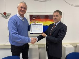 Swann-Morton’s retiring Sales & Marketing Director Chris Taylor proudly presents Qlicksmart’s Golden Scalpel Award to the new Sales Director Tom Caley and Customer Support Manager Adrian Glossop