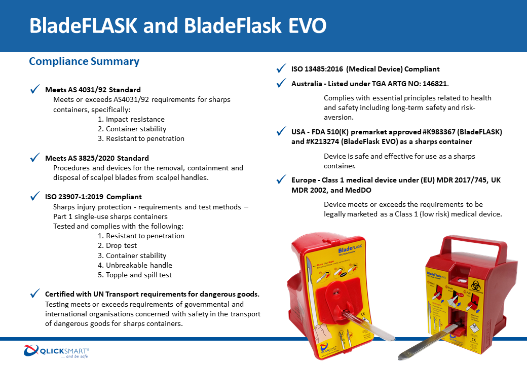 If you have any questions regarding the new Standard regarding the Procedures and devices for the removal, containment, and disposal of scalpel blades from scalpel handles, please contact us at hello@qlicksmart.com.