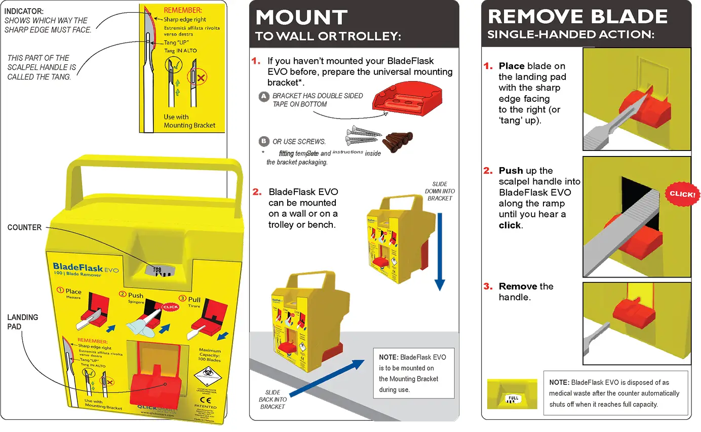 BladeFLASK EVO combines the proven safety of Qlicksmart’s original design with refined performance. Built for modern clinical demands, it offers faster, safer blade removal without compromising sterility or workflow.