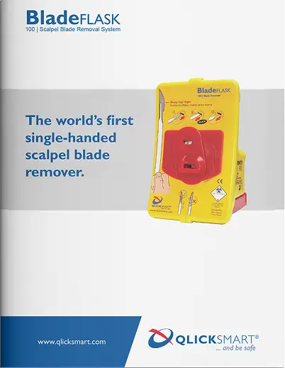 The BladeFLASK is a single-handed blade remover engineered to improve sharps safety in any clinical environment. With its automatic containment system, it provides a fast, safe, and sterile way to dispose of used scalpel blades without the need for two hands or additional tools.