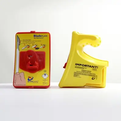 The Qlicksmart BladeFLASK has been designed to comply with the international standard colours for medical sharps waste. The red unit complies with US, Central America, and South America standards, and the yellow unit complies with most other countries’ standards. Please consult your organization to determine which unit complies with local standard colours for medical sharps waste.